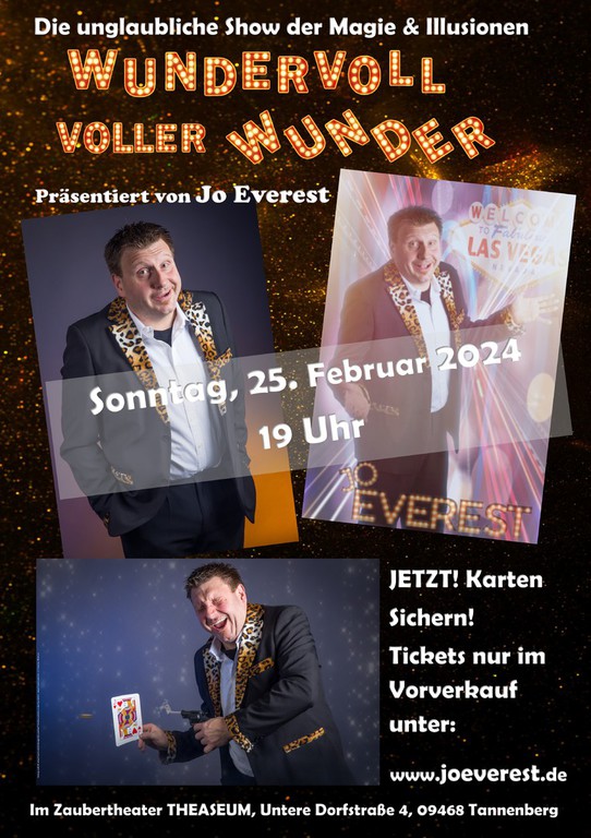 Jo Everest entführt dich in seiner einmaligen Show Magie der Träume im Theaseum auf eine magische Reise, die du so schnell nicht vergessen wirst.